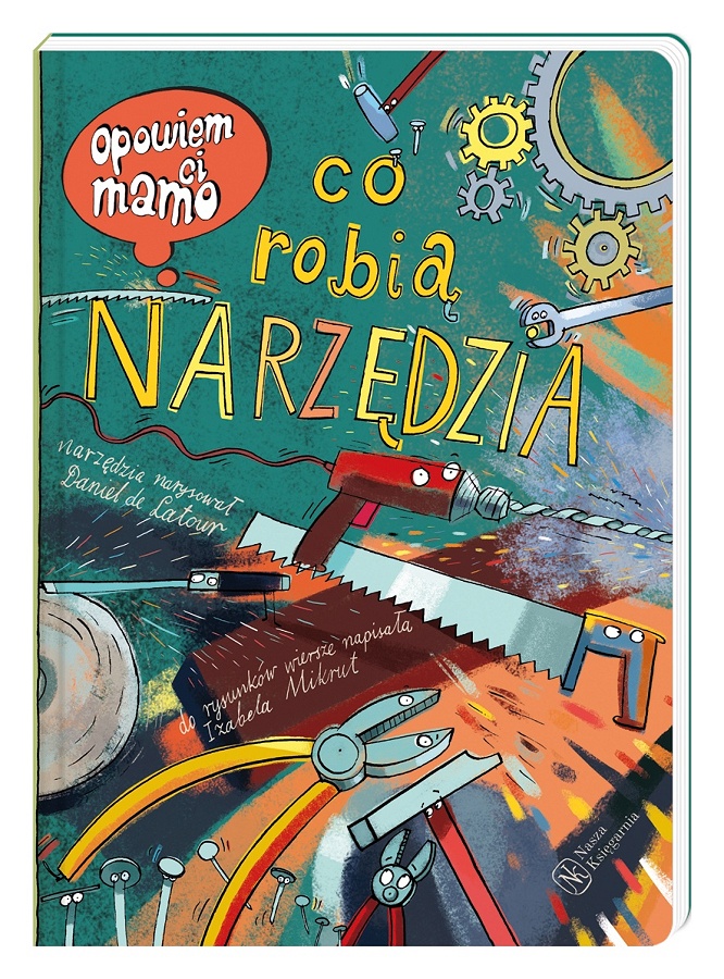 Narzędzia w garażu okropnie się nudzą. Niektóre po prostu marzą o ucieczce w świat, inne mają bardziej ambitne plany – pragną zbudować rakietę kosmiczną. A gdy zdobędą prawdziwy krążownik szos – taczkę ogrodową – ta przygoda nabierze doprawdy szalonego tempa. W swojej niezwykłej podróży odwiedzą warsztat samochodowy, pracownię lutnika, zakład rzeźbiarski, tartak i wiele innych miejsc, w których ich pomoc okaże się niezbędna. Poznajcie obcęgi, kombinerki, wiertarkę, śrubokręty, klucze, lutownicę, a także licznych przyjaciół naszych bohaterów (w tym dwa tajemnicze jamniki). Dzięki jedynym w swoim rodzaju ilustracjom Daniela de Latoura i zabawnym rymowanym zagadkom Izabeli Mikrut mały czytelnik nauczy się rozpoznawać najważniejszych mieszkańców skrzynki narzędziowej, przy okazji rozwijając spostrzegawczość i umiejętność logicznego myślenia.